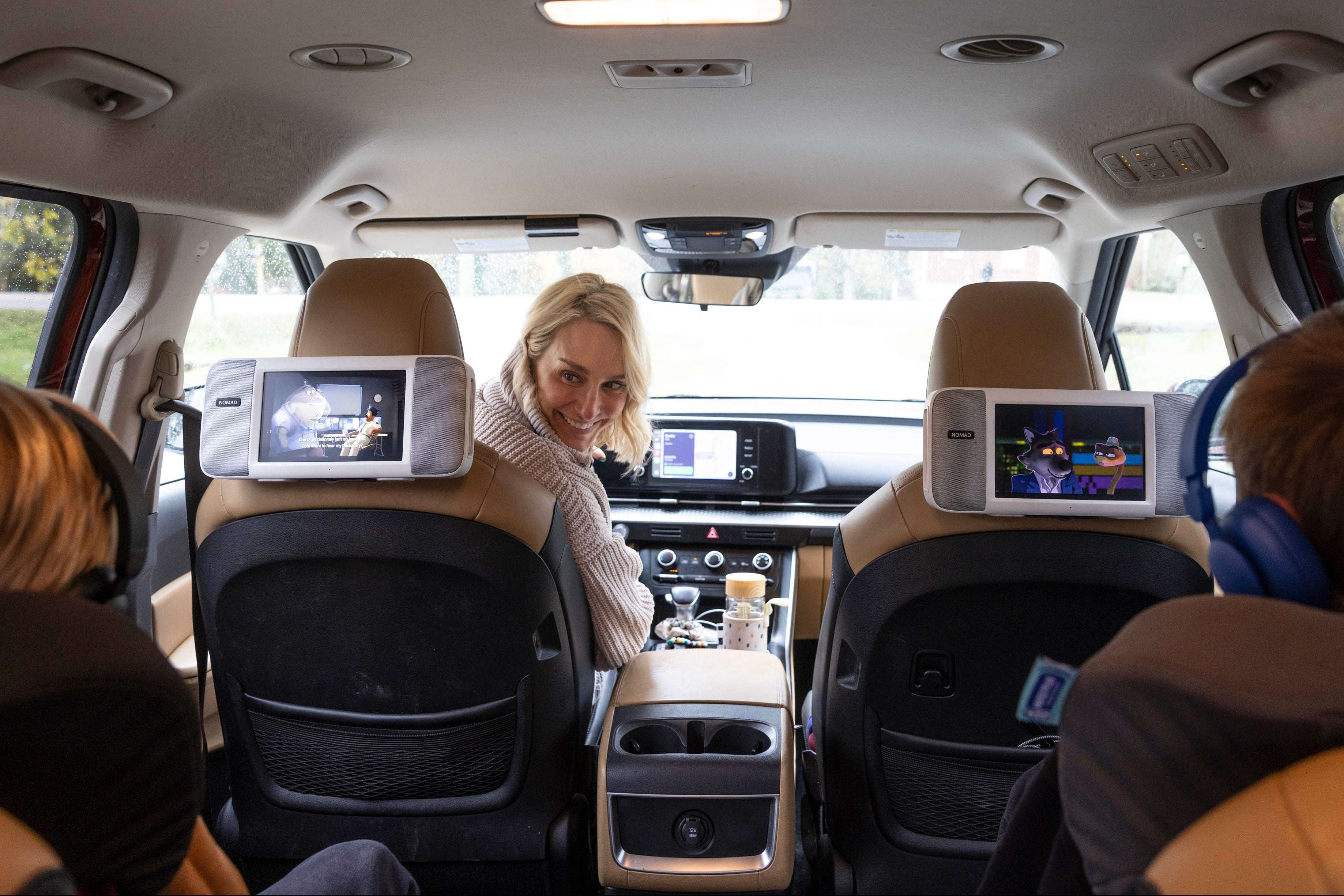 Each Nomad pairs with wireless headphones so every kid can watch what they want — without blasting the car.