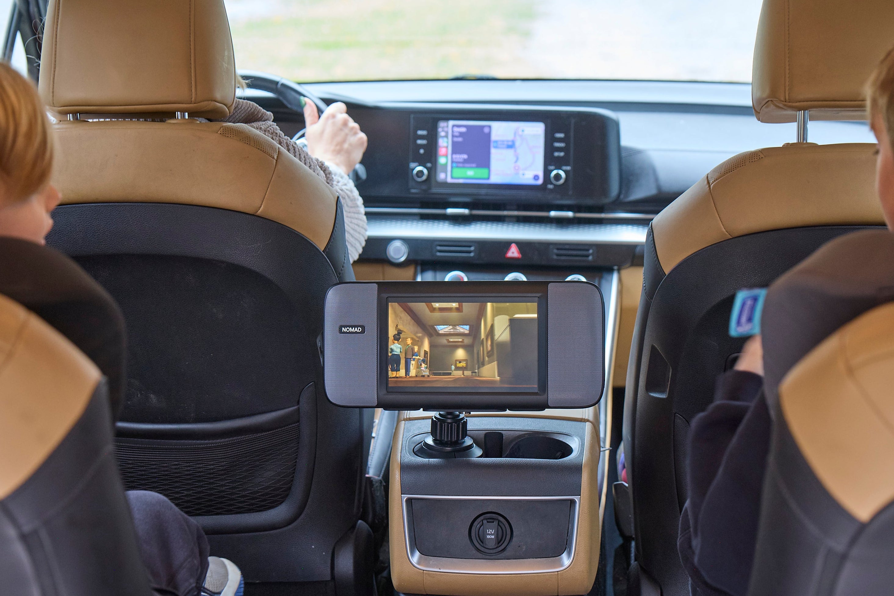 Each Nomad pairs with wireless headphones so every kid can watch what they want — without blasting the car.